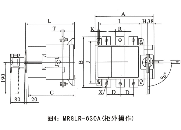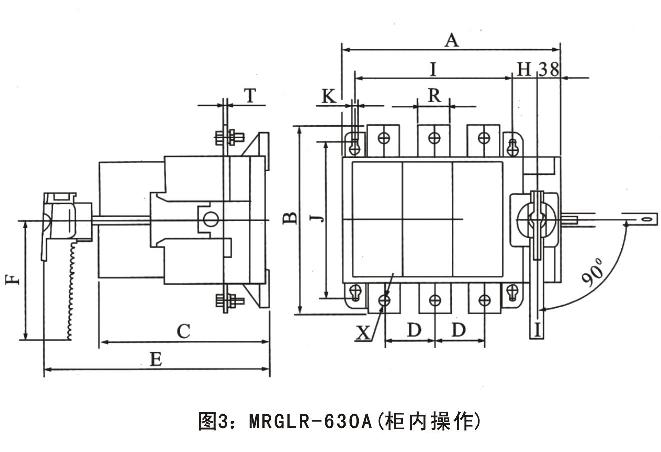 MRGLR-160~630A的外形與安裝尺寸(尺寸見(jiàn)表)