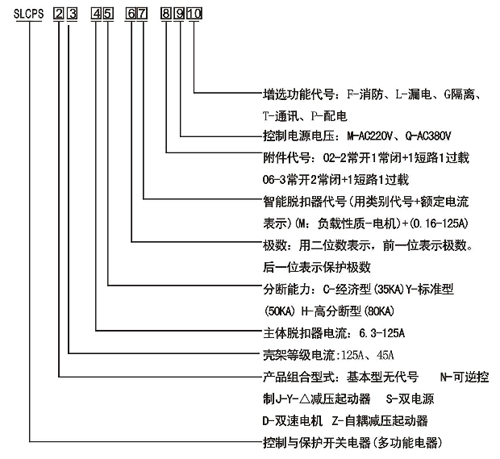 用戶在訂貨時(shí)應(yīng)寫明SLCPS控制與保護(hù)開關(guān)電器的產(chǎn)品型號(hào)、規(guī)格、短路脫扣器額定電流、智能控制器額定工作電流、負(fù)載性質(zhì)、線圈控制電壓、接線方式等內(nèi)容。