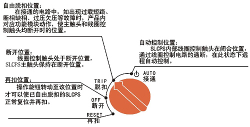 SLCPS操作機(jī)構(gòu)的工作狀態(tài)在主體面板上的符號(hào)及指示器位置含義如下圖 所示。